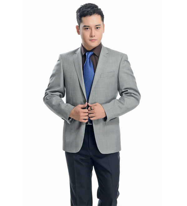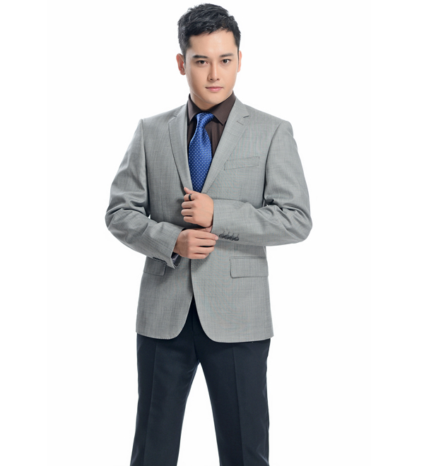 淺灰色單粒扣男款職業工作服定做產品詳細圖