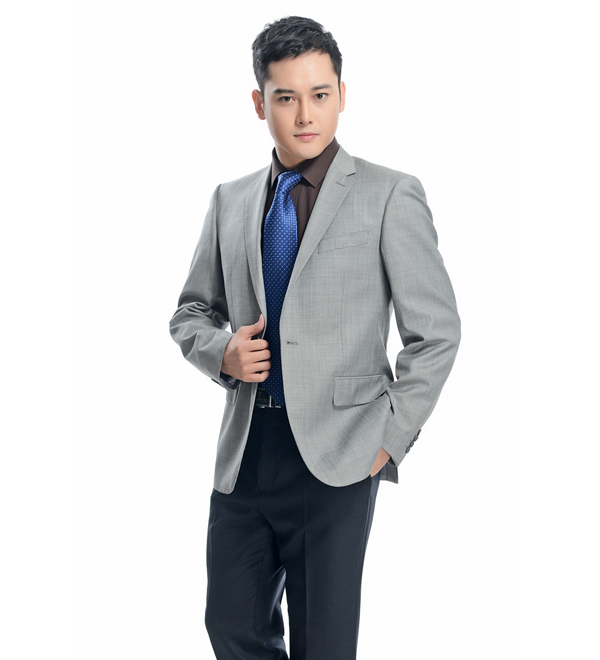 單??蹨\灰色西裝,時尚百搭風范,適合各種行業穿著,款式利落大方,采用經典的后開叉設