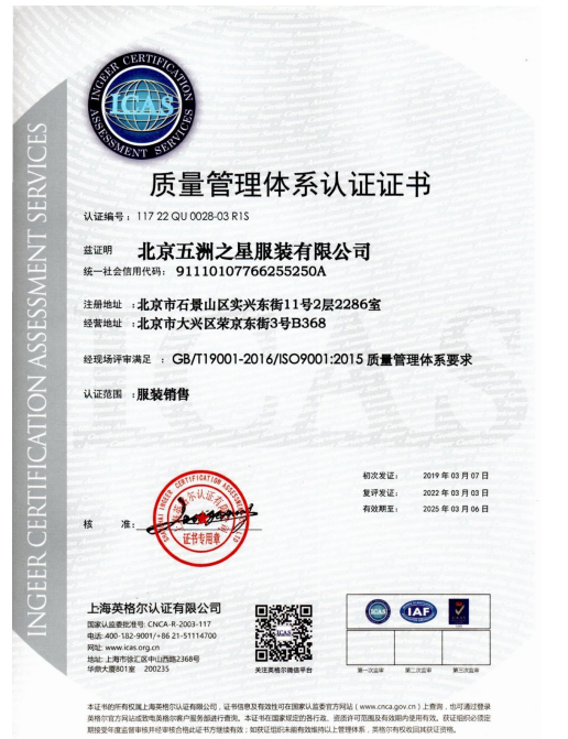 我是五洲之星的小編,五洲之星成立18年之久,實力較強,在合作過程中,客戶的穿著體驗和形象提升是我們一直以來的服務宗旨。